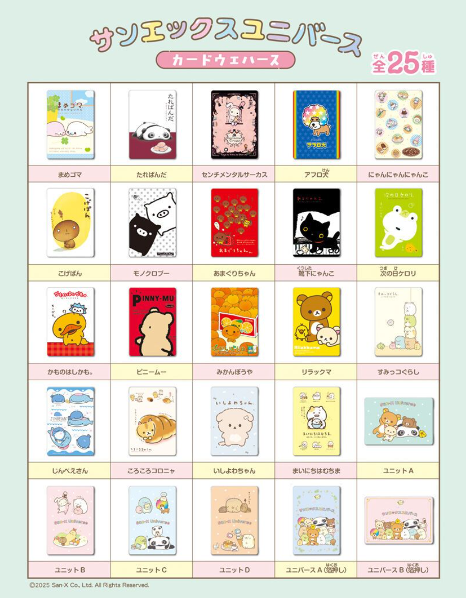 Een wafel in de smaak: vanille! Naast de wafel krijg je er ook een San-X kaart bij die je kunt verzamelen. Er zijn 25 verschillende kaarten. Met hele bekende zoals Rilakkuma en Sumikkogurashi, maar ook echte klassiekers zoals Monokuroboo, Afro Ken en Tare Panda.